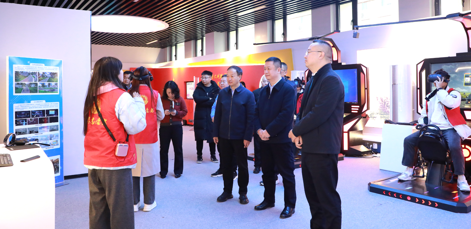 冉安健一行先后参观了学校南门广场、校史馆、博雅礼堂、学生事务大厅、VR虚仿基地、工程实训中心等地,深入了解学校的办学历程、教学科研成果、人才培养和乡村振兴工作开展情况。