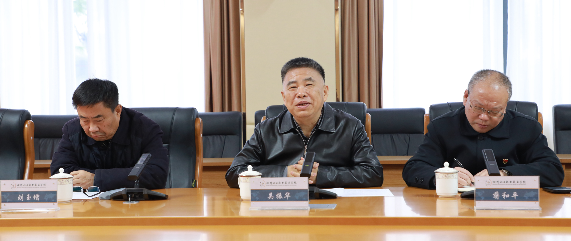 12月3日上午,江阳城建职业学院理事长、校长吴振华带队,党委书记蒋和平、执行校长刘玉增、副校长吴炎龙,党委副书记、学生工作部部长徐世银,副校长、教务处处长秦庆礼,副校长任新红、谭建鑫一行莅临学校考察交流。学校党委书记刘志勇,党委副书记、院长文申柳,党委副书记、纪委书记、工会主席郑辅春,党委委员、副院长向桢,邓启华,徐丽萍,副院长吴立凡参加交流座谈会。