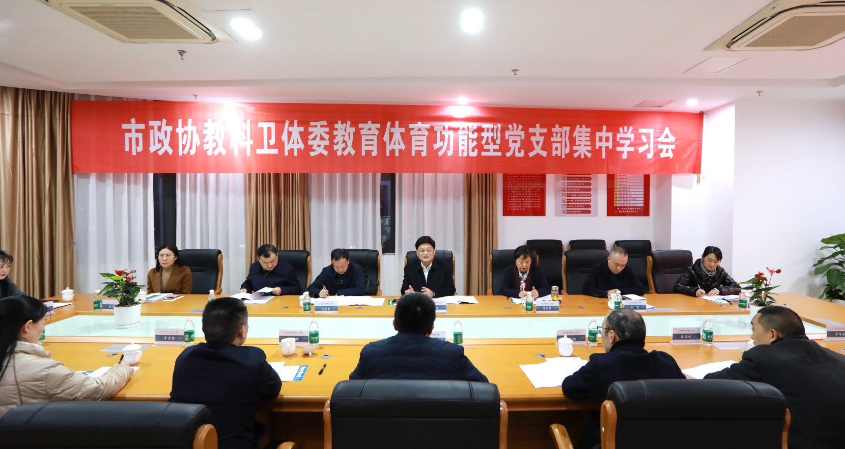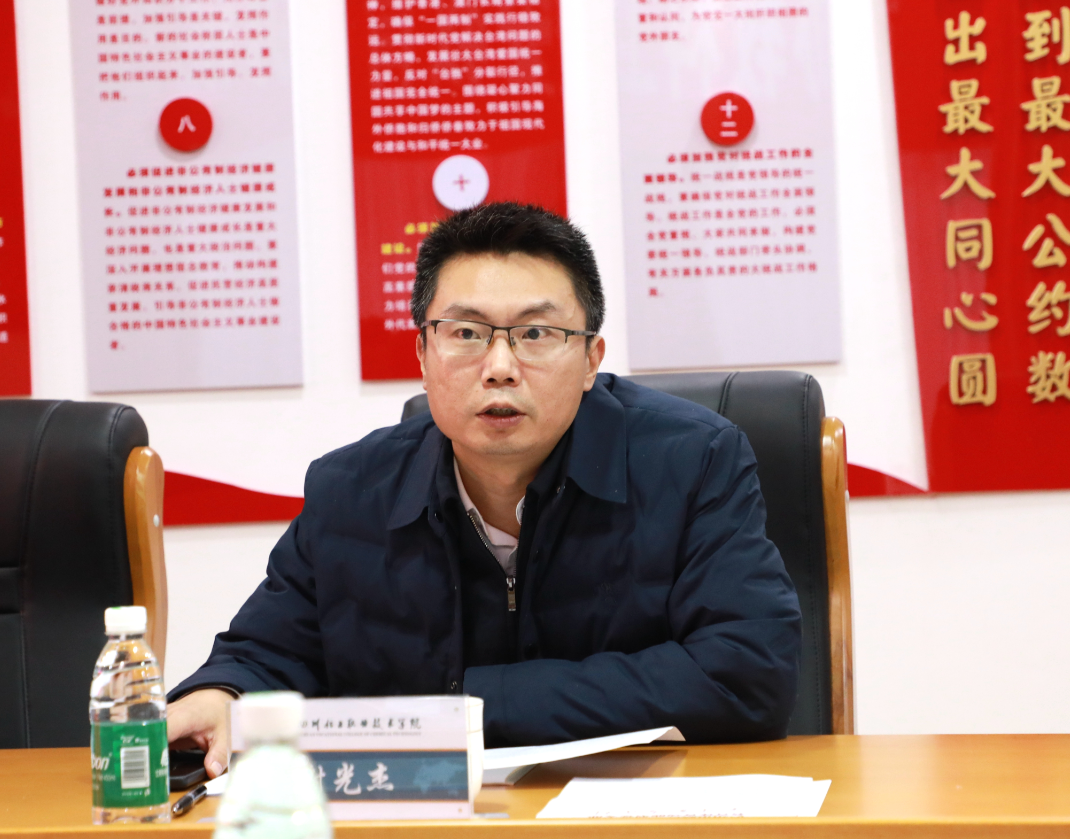 12月2日,泸州市政协教科卫体委教育体育功能型党支部、科技功能型党支部集中学习会在学校市政协教育界别委员工作室召开。市政协主席、党组书记田亚东,市政协副主席马宗慧出席会议。市政协教科卫体委分党组书记、二级巡视员胥兴贵,市委副秘书长、办公室主任曾焱,市政协社法委主任宋智伟,市政协教科卫体委主任杨开春,市政协教科卫体委副主任向章明、黄智超,市政协机关党委副书记李雪梅,学校党委委员、副院长谢光杰参加会议。会议由市政协委员、市政协教科卫体委教育体育功能型党支部书记、学校党委书记刘志勇主持。