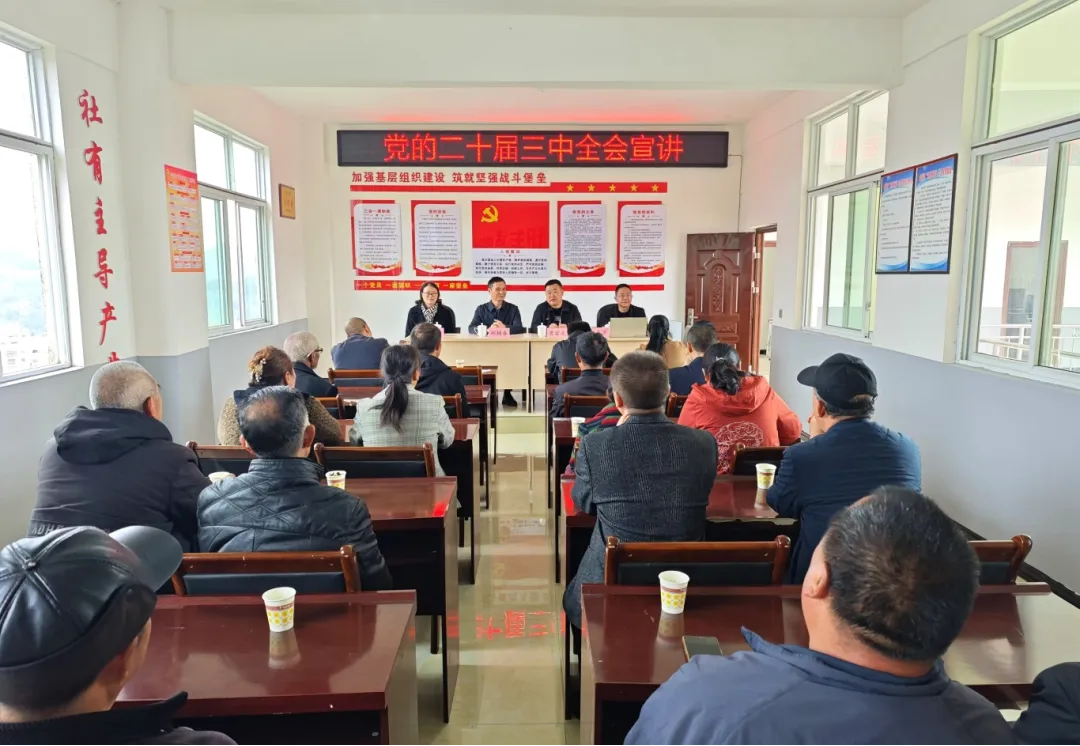 在摩尼镇金榜村,郑辅春一行听取了驻村第一书记张良勇的工作汇报,并实地考察了金榜村党群服务中心、文化院坝等基地,详细了解基地基础设施建设情况,金榜村村集体经济、产业发展、驻村干部工作生活等情况。随后,经济管理学院党总支书记张晋宣讲了党的二十届三中全会精神和省委十二届六次全会精神。