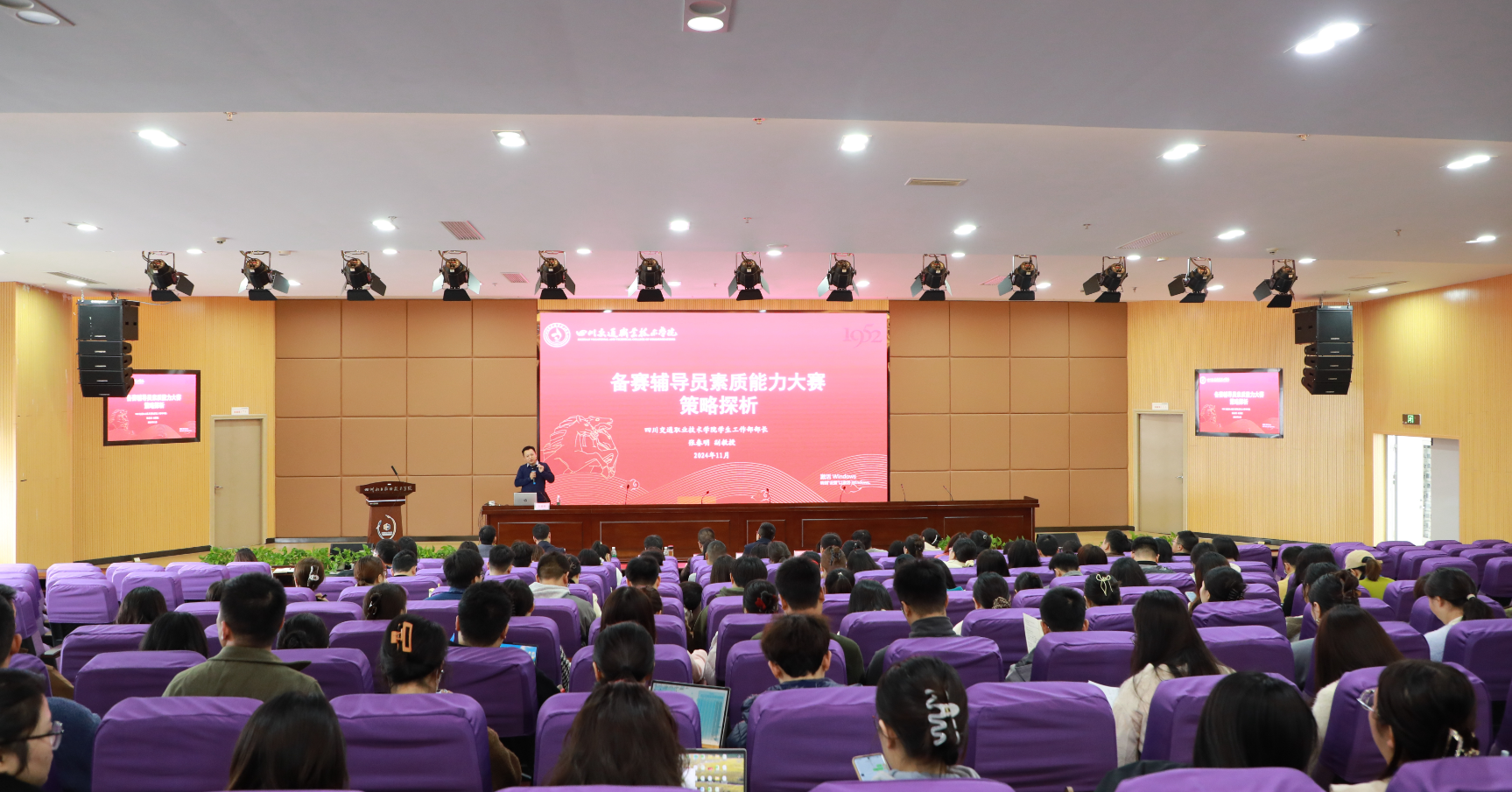 为进一步加强学校辅导员队伍的专业素养与综合能力,提升辅导员队伍的业务能力和参赛水平,为即将举行的辅导员素质能力大赛做好充分准备,10月20日,学校邀请四川交通职业技术学院学生工作部部长张春明副教授来校,在护国校区第二学术报告厅为全体辅导员作了主题为“以赛赋能—辅导员素质能力提升”专题培训。学校党委委员、副院长谢光杰,各二级学院分管学生工作领导、学生处有关负责人、全体专兼职辅导员参加培训。培训由学生处处长邓子萍主持。
