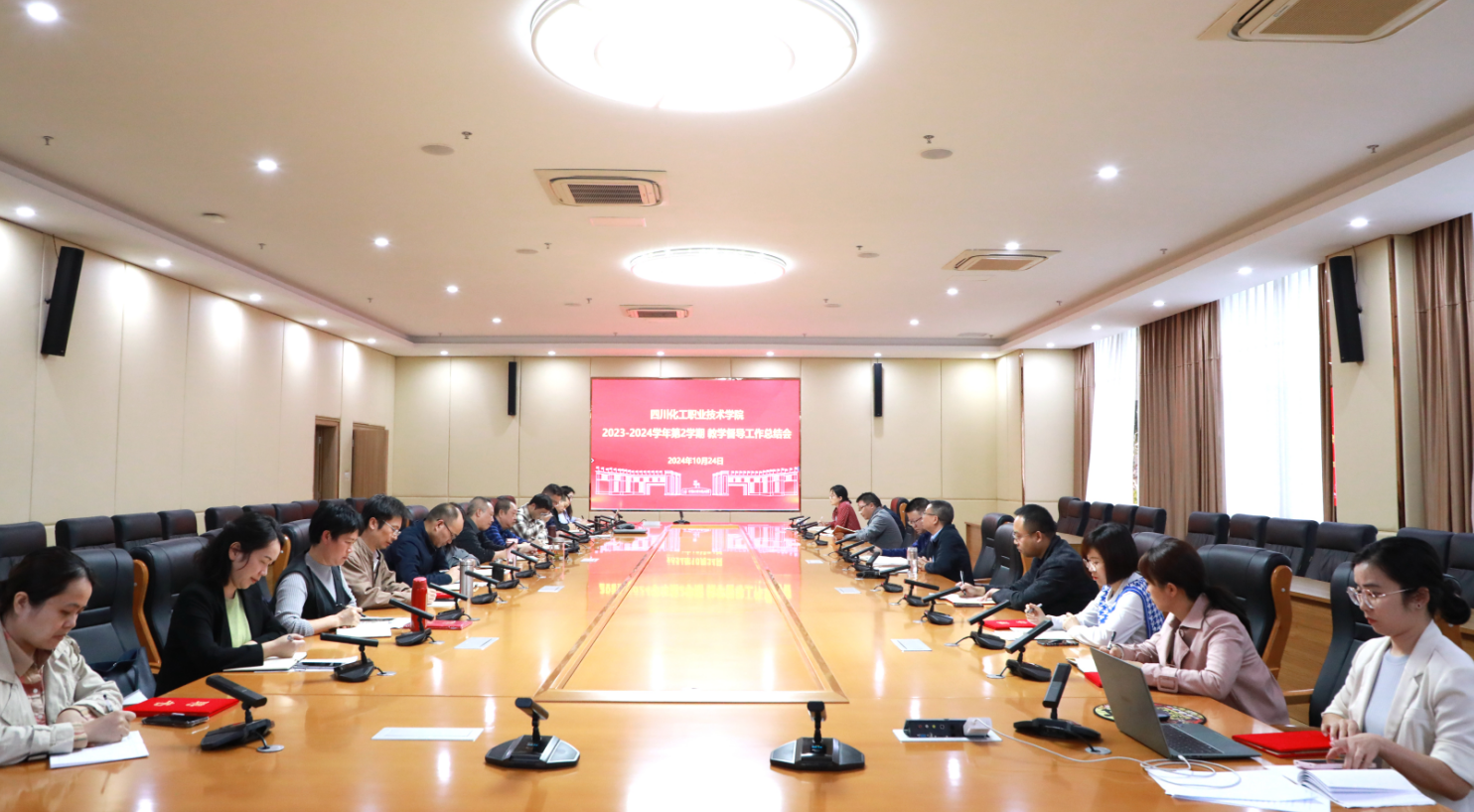 2024年10月24日下午,2023-2024学年第2学期教学督导工作总结大会在综合办公楼107会议室召开。学校党委副书记、院长文申柳,党委委员、副院长邓启华参加会议。