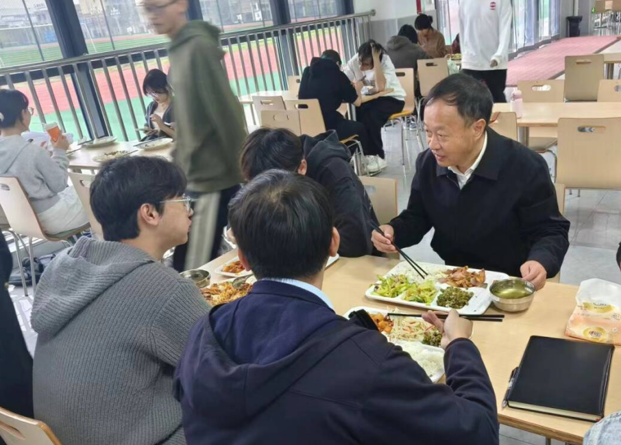 中午,刘志勇与同学们同桌就餐交流,深入了解同学们对食堂就餐的意见建议,叮嘱同学们要养成良好的饮食和卫生习惯。同时,他要求有关职能部门要切实履职尽责,不断强化安全意识、责任意识和服务意识,为全体师生提供优质的服务、热乎可口的饭菜,让学生满意,让家长放心。