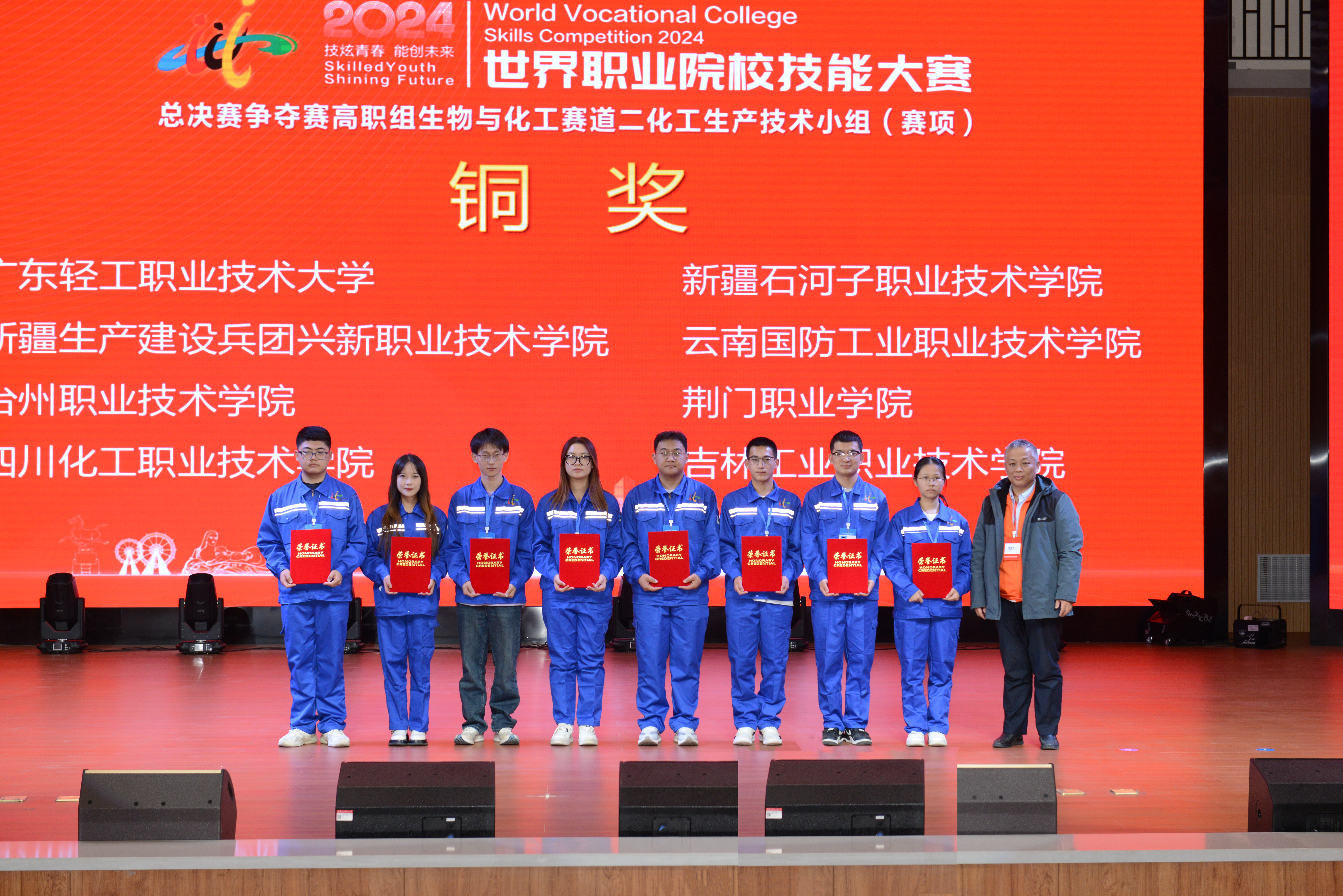 此外,我校药品与环境工程学院祝瑶、文贵洋、简周轩、伍雨涵四名同学组成的代表队(指导教师:张华芳、曹栩菡),在生物与化工赛道二“化学实验技术”赛项中斩获“银奖”;应用化工学院任如玉、刘乐宇、海拜尔•阿布来提、刘呈信四名同学组成的代表队(指导教师:魏菊、王政),在生物与化工赛道二“化工生产技术小组”赛项中斩获“铜奖”。