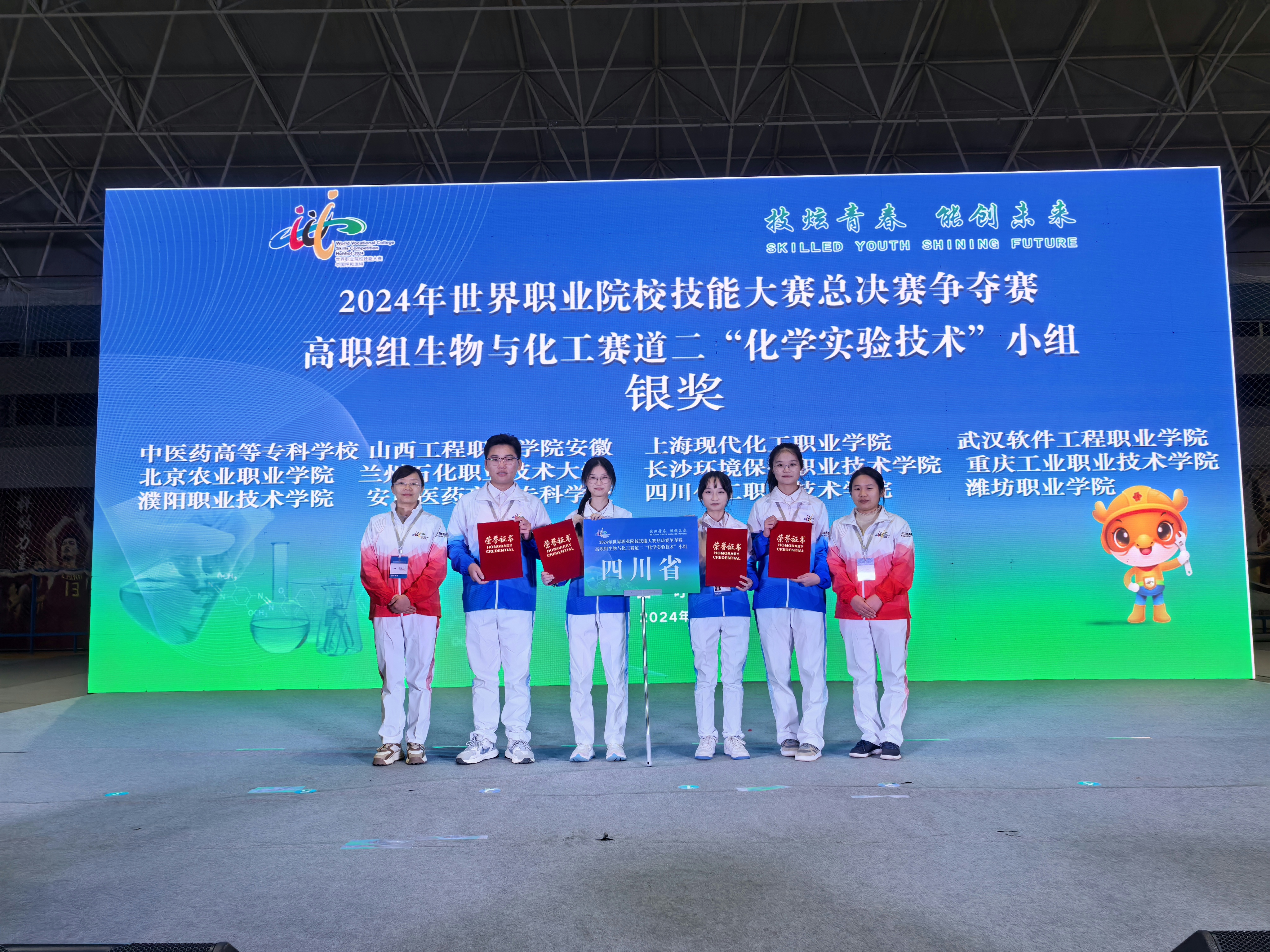 此次大赛,我校药品与环境工程学院蒋育虹、刘正宣、蒋超琦、贺鹏四名同学组成的代表队(指导教师:陈林、龙逢兴、朱先凤),在生物与化工赛道二组“现代化工HSE技能”赛项中,凭借精湛的专业技能、高效的团队协作以及稳定的现场表现,以总排名第二名的优异成绩荣获“金奖”。