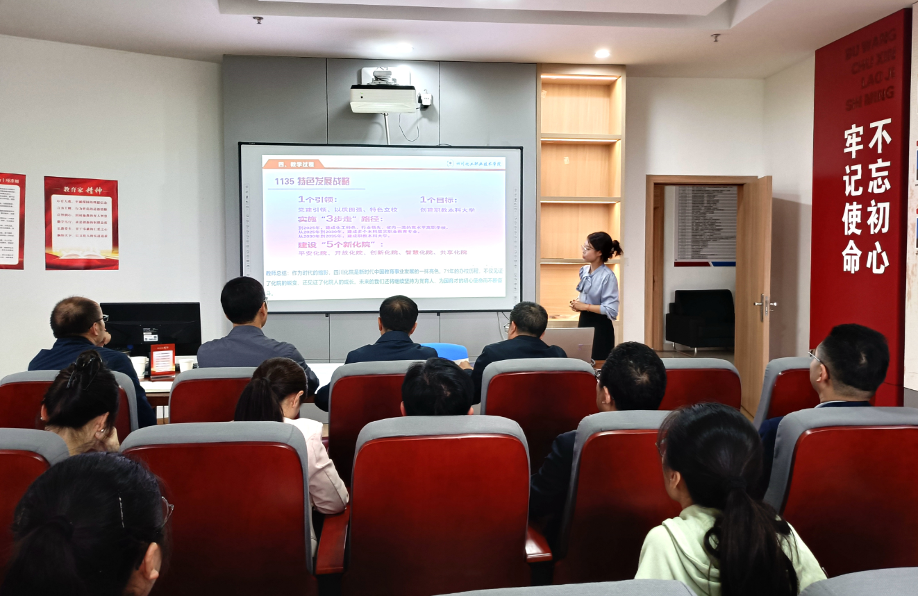 备课会先由“形势与政策”课教师何清进行“七十五载迎盛世 砥砺前行续华章”专题教学的说课。何清老师分别从课前、课中、课后进行了介绍。在课前对授课对象进行了学情分析并有针对性地设置教学目标和教学策略。在课中讲授时沿着“两维一线”的逻辑思路,讲清楚了中华人民共和国成立75周年以来取得的成就是什么、原因是什么、未来如何续写华章,最后还介绍了课后给学生安排的学习任务。