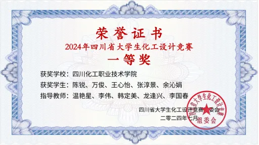 据悉,全国大学生化工设计竞赛是教育部认可的84项全国大学生学科A类竞赛之一,是我国化工类专业级别最高、参与人数最多、影响范围最广的学科竞赛,至今已连续举办18届。参加此次比赛的5名队员均来自学校2022级职教本科班,充分展示了学校职教本科班学生扎实的工程设计、工程实践和创新能力,彰显了职教本科教育教学实践和人才培养质量实效,受到赛事评委和专家的高度好评。
