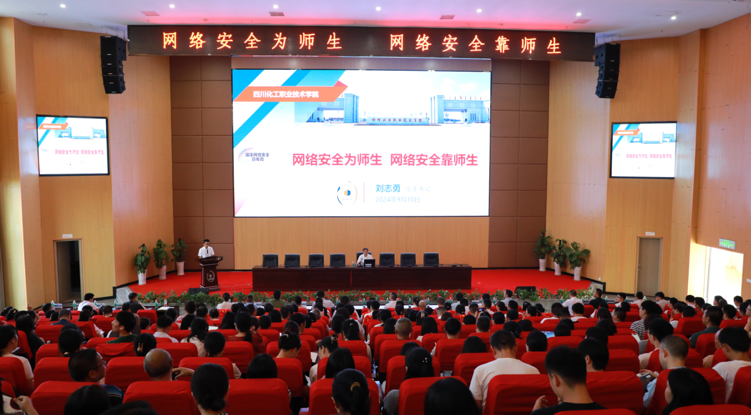 为深入学习贯彻习近平总书记关于网络强国的重要思想,贯彻落实《中华人民共和国网络安全法》等相关法律法规,提高全校师生的网络安全意识和防护能力。2024年9月10日下午,学校党委书记刘志勇以“网络安全为师生,网络安全靠师生”为题,在第一学术报告厅为全校中层及以上领导干部、全体专兼职教师和学生代表讲授了一堂网络安全专题讲座。讲座由党委委员、副院长向桢主持。