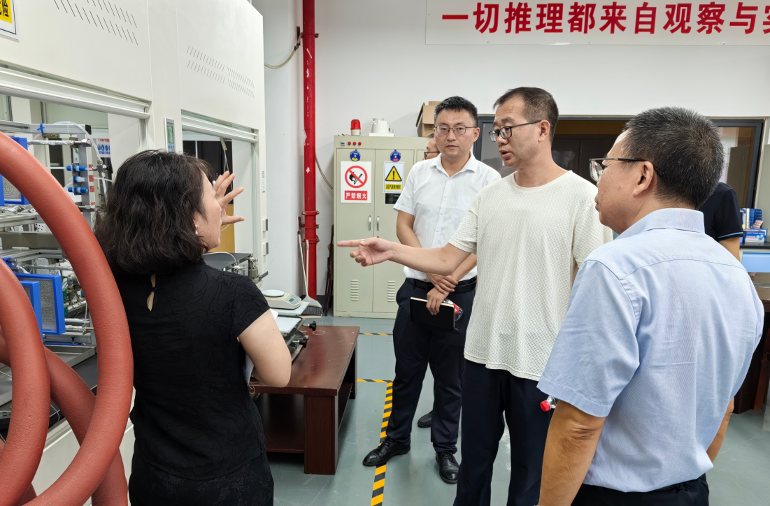 赵秋颖一行先后到化工实训工程中心、氘代化工与功能材料实验室等地实地调研,详细了解学校培植新质生产力的硬件设施、科研项目、成果转化、校企合作等开展情况和取得的成绩。