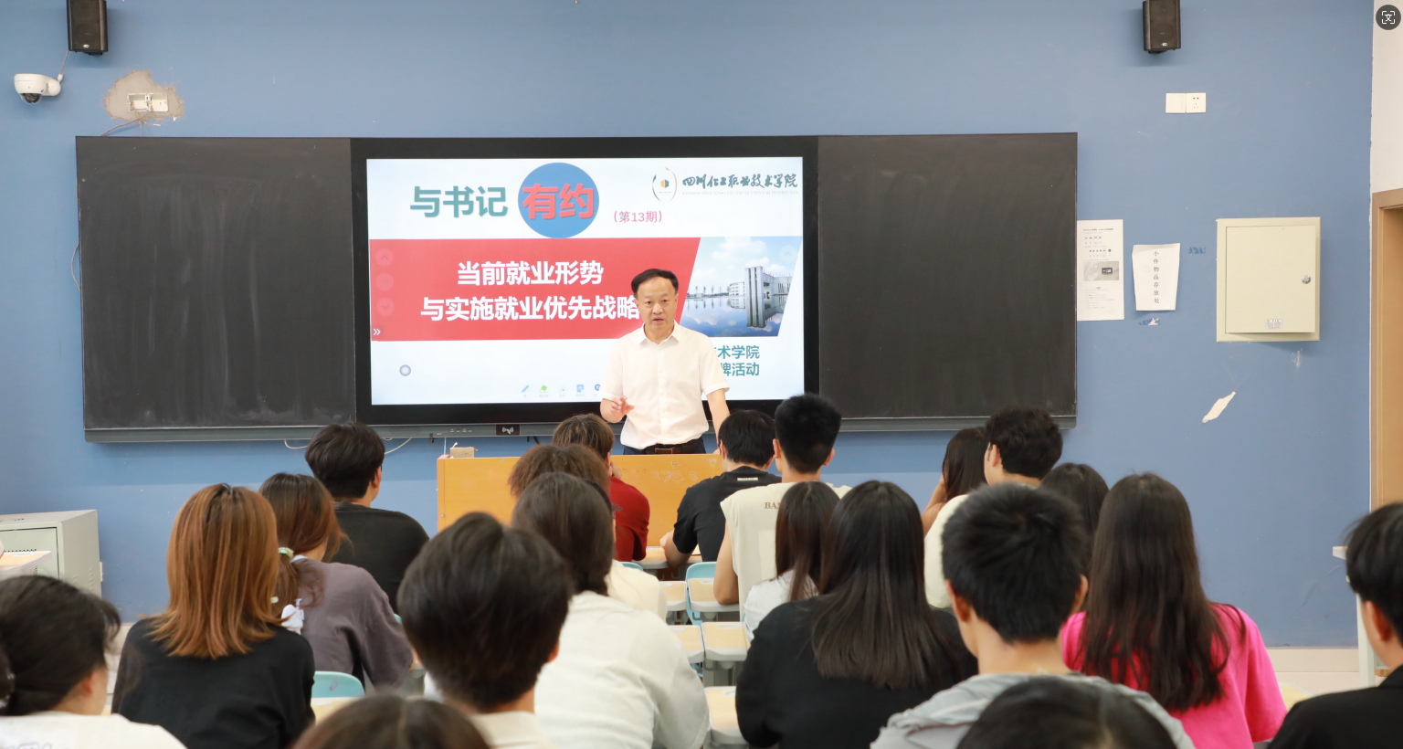 为进一步贯彻落实习近平总书记关于高校毕业生就业创业工作的重要指示精神和全国高校毕业生等青年就业创业工作视频会议精神,引导学生认清当前就业形势、了解我国就业优先战略,促进毕业生高质量充分就业,6月26日下午,“与书记有约”活动走进应用化工学院2025届毕业生,学校党委书记刘志勇以“当前就业形势和实施就业优先战略”为主题,为同学们上了一堂思政课。