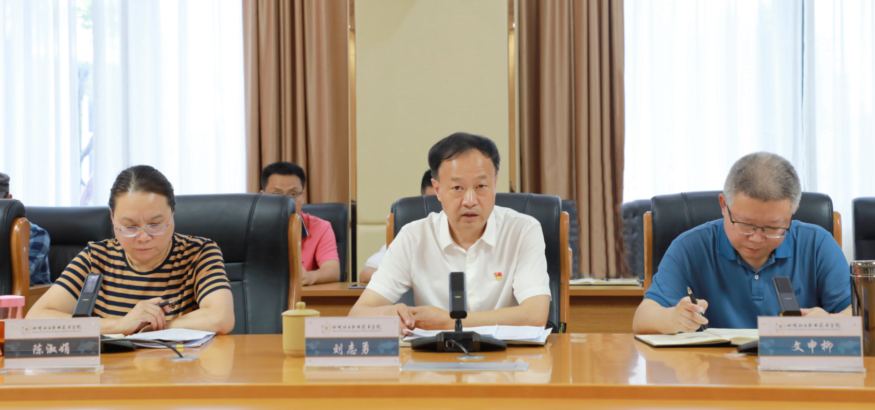 2024年6月28日,学校在综合办公楼第一会议室召开党委理论学习中心组学习(扩大)会议暨党纪学习教育专题学习研讨会,学校党委书记刘志勇主持会议并讲话。学校党委理论学习中心组成员、中层及以上领导干部参加会议。