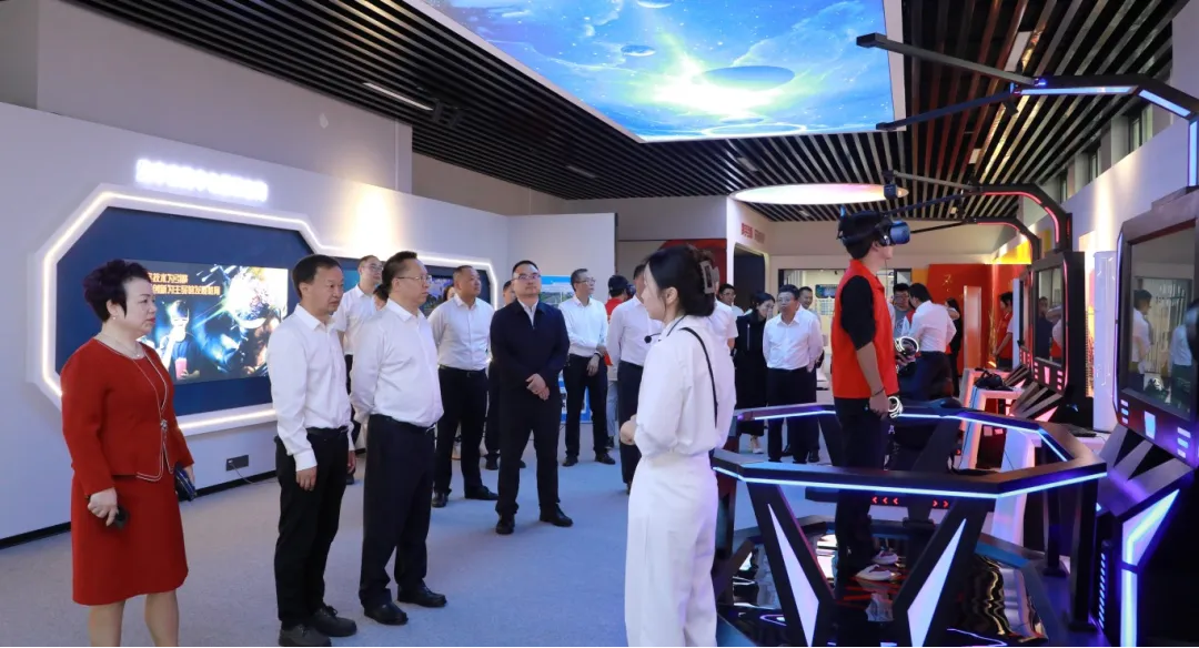 活动结束后,何洪波一行先后前往学校VR红色基地、泸州市工伤预防警示教育基地和现代化工产教融合实训中心等地,通过沉浸式体验、实地查看、听取汇报等形式,亲自体验了数字党建博物馆、飞夺泸定桥等沉浸式红色文化学习项目,详细了解学校办学历程、办学规模、专业建设、人才培养、招生就业、教育教学改革、实训基地建设、产教融合、校企合作开展情况和取得的成绩。