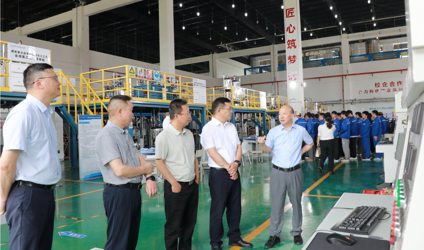 仪式结束后,胡耀坤一行在蒲开伦的陪同下参观了同心桥、机械工程学院实训中心、现代化工产教融合实训中心、博雅礼堂、博学楼等,校企双方领导围绕人才培养、专业建设、实训室建设等方面进行了深入交流。