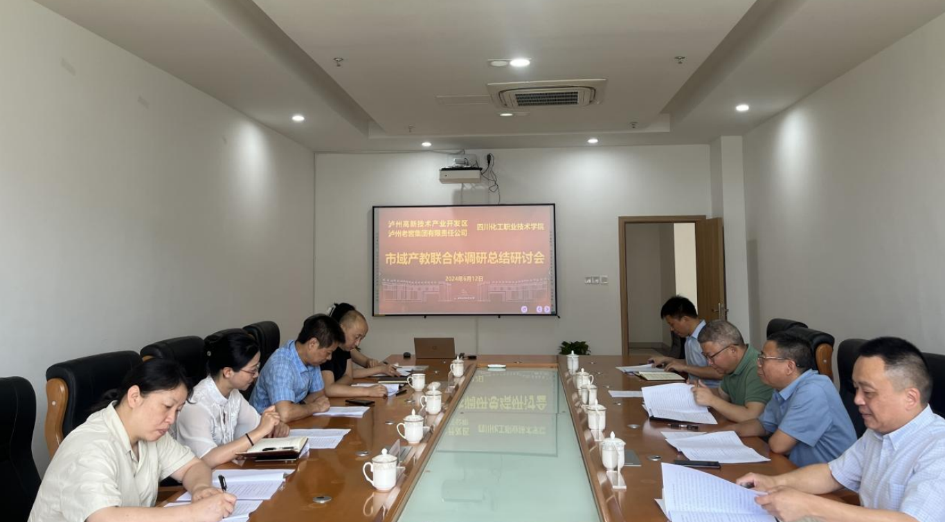 为推动泸州高新产业发展产教联合体建设,巩固落实赴市外调研学习成果,6月12日上午,学校召开市域产教联合体调研总结研讨会。市教体局高职成教科科长张流斌,市高新技术产业开发区管理委员会社事和农林局局长杨科琴, 泸州老窖集团有限责任公司西部工匠城有限责任公司副总经理、联合体理事会秘书处副秘书长姚毅飞,学校党委副书记、院长、联合体常务副理事长文申柳,党委委员、副院长、联合体理事会秘书处副秘书长谢光杰参加研讨会。学校党委委员、副院长、联合体理事会秘书处秘书长邓启华主持会议。