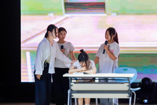 参赛作品以大学校园为背景,以大学生容貌焦虑、网络游戏、校园欺凌、网络诈骗、自尊自卑等方面的心理冲突为立足点,通过演绎角色内在的心理冲突和心理调适过程,引导大学生逐渐接纳自己、整合自己,进而创造自我价值。比赛中,同学们用心投入的表演、跌宕起伏的剧情、感人至深的画面、绚丽的舞台,给现场嘉宾和观众奉上了一场极具震撼力和感染力的视觉盛宴。