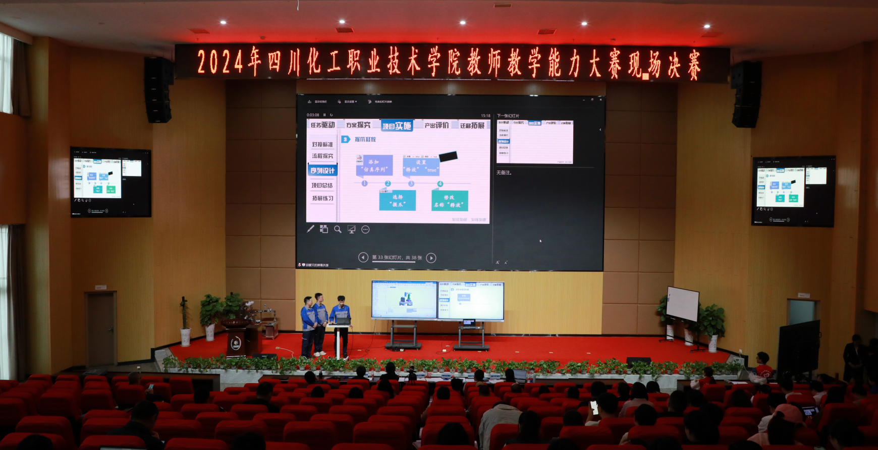 教师教学能力大赛为教师提供了展示综合素质的舞台,也成为了教师教学能力提升的有效载体。此次大赛充分展示了学校不断深化教育教学改革、加强内涵建设的成果,学校将继续坚持“以赛促教、以赛促学、以赛促改、以赛促建、以赛促训”的理念,强化教学能力提升,助力教师在课程建设、教材建设能力等方面的赛项成果转化,进一步激发教师们参与教育教学改革的热情,提升师资队伍建设水平,提高人才培养质量,为学校全面实施“1135”特色发展战略贡献力量。