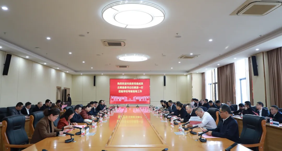 3月21日,市政府党组成员、古蔺县委书记任晓波带队莅临学校考察调研。市经信局党组成员、副局长付小峰,县委副书记、县长赵源华,县委副书记王明,县人大常委会副主任林燕,县政府党组成员、副县长谢刚,副县长黄茜,县政协副主席张明勇,学校党委书记刘志勇,党委副书记、院长文申柳,党委副书记陈淑娟,副院长蒲开伦、邓启华、谢光杰、徐丽萍等全程或分段出席活动。