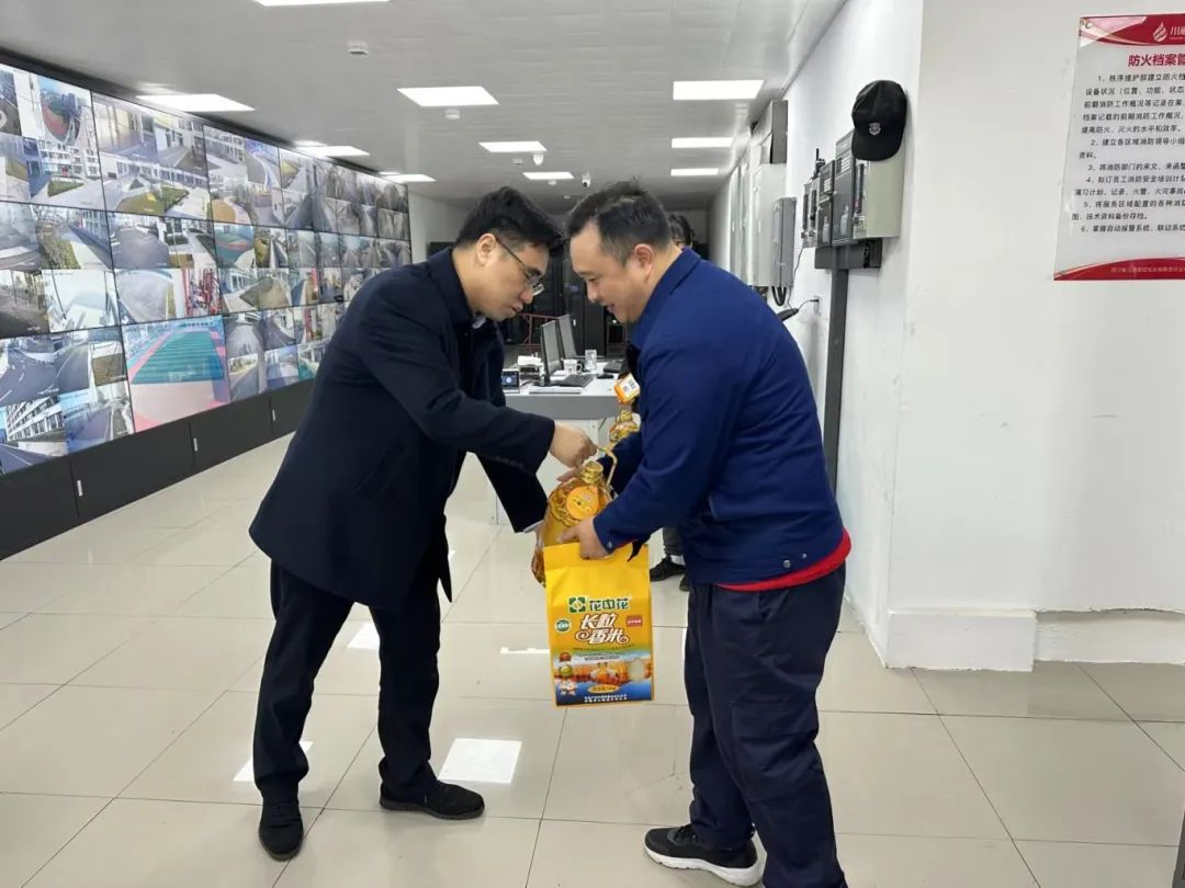 2月10日上午,正值甲辰龙年大年初一,校园内处处洋溢着喜庆祥和的节日气氛,学校副院长吴立凡来到学校,带队检查全校安全工作,看望慰问春节期间依然坚守岗位的值班人员,送上慰问品和节日的问候,并代表学校向春节期间坚守岗位的值班人员和全校教职工致以亲切问候和新春祝福。