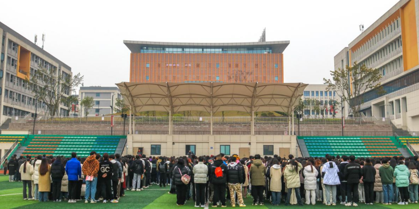 2023年国家奖学金获得者数字经济学院VR2131班赵亮,校三好学生、四川省大学生综合素质A级证书获得者经济管理学院酒店管理2231班李林春作国旗下的演讲,号召全体同学树立远大理想,以爱国主义为核心,大力发扬工匠精神,不断增强自身综合素质,为实现中华民族伟大复兴的中国梦贡献自己的力量。