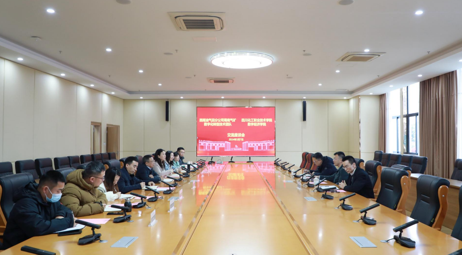 3月7日下午,西南油气田分公司蜀南气矿信息科技部主任王旭带领数字化转型技术团队一行三人到我校参观交流。学校党委委员、副院长邓启华参加交流会。