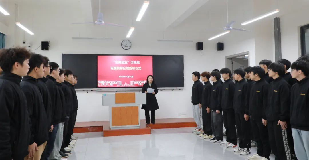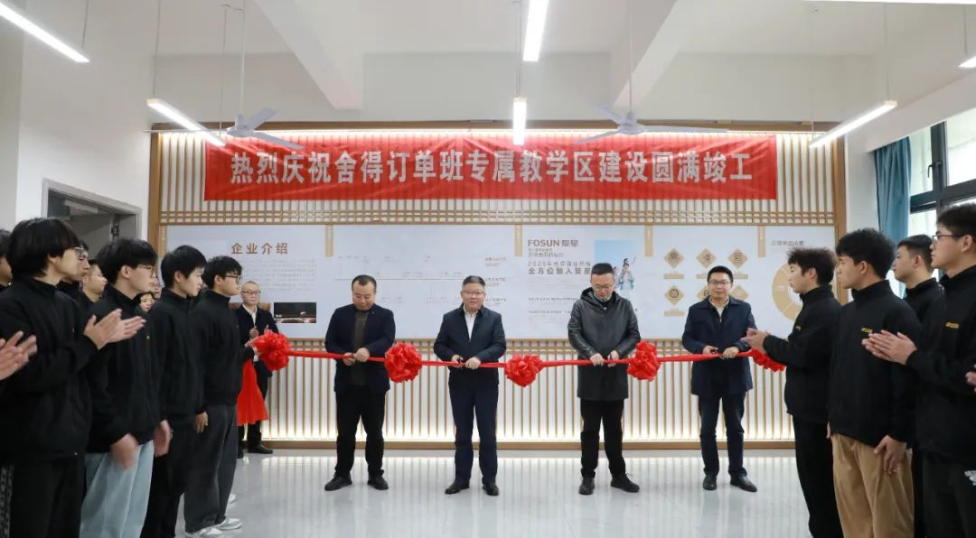 随后,赵鹏、闫德民、文申柳、谢光杰一同为舍得订单班专属教室剪彩,在与会人员的热烈掌声中,舍得订单班专属教室正式投用。