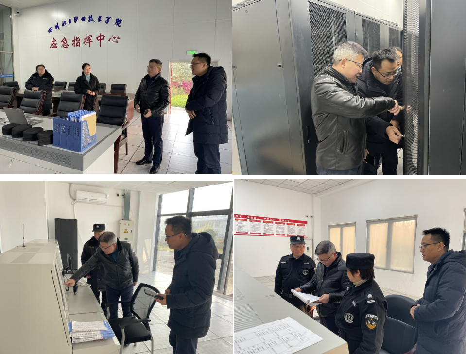 12月19日上午,学校党委副书记、院长文申柳带队突击检查消防和监控设施设备运行情况。保卫处副处长何文德、应急指挥中心主任冯树锋陪同检查。