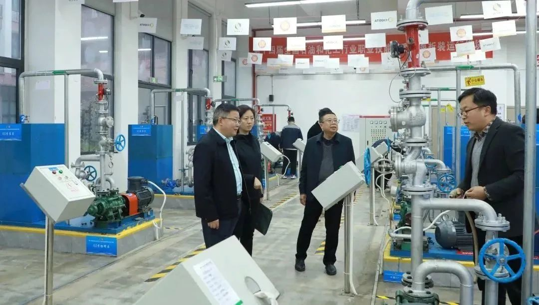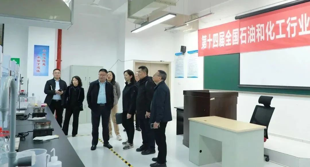 第十四届全国石油和化工行业职业技能竞赛决赛开赛在即,2023年11月25日,化学工业职业技能鉴定指导中心主任沈磊、副主任刘东方,学校党委副书记、院长文申柳,副院长邓启华、徐丽萍等检查大赛筹备情况。