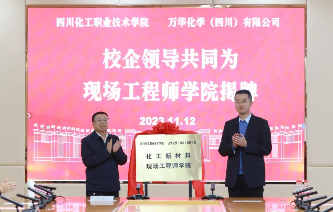 为贯彻实施科教兴国战略,强化现代化建设人才支撑,2023年11月12日,学校与万华化学(四川)有限公司共建化工新材料现场工程师学院暨化工新材料现场工程师班开班仪式在学校综合办公楼第一会议室举行。万华化学(四川)有限公司人力资源部副总经理韩春臻,学校党委副书记、院长文申柳,副院长邓启华参加仪式。仪式由应用化工学院院长徐淳主持。