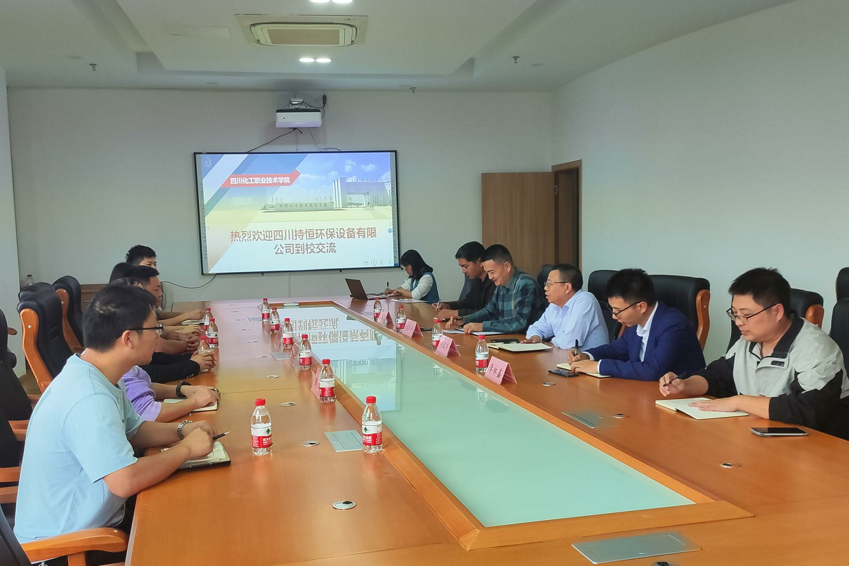 9月26日,四川持恒环保设备有限公司技术总监阎小宁一行来校洽谈生活用水处理厂智能化改造项目并在综合办公楼221会议室召开合作交流座谈会。学校党委委员、副院长邓启华及智能制造学院院长李林鑫参加座谈会,座谈会由科技处副处长文仁兴主持。