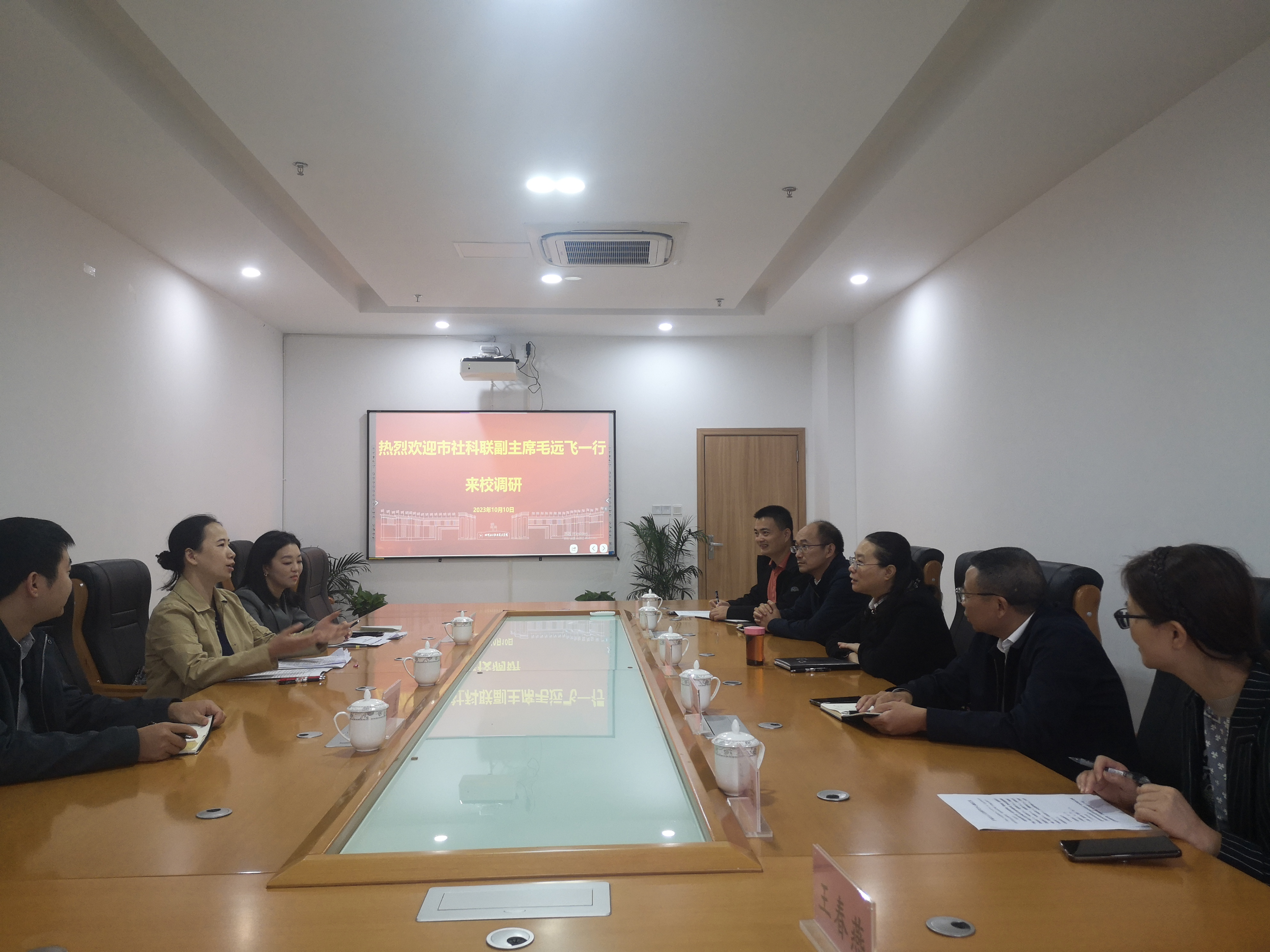 10月10日上午,泸州市社科联副主席毛远飞一行莅临学校调研并在综合办公楼206会议室举行交流座谈会。学校党委副书记、纪委书记、工会主席陈淑娟,党委委员、副院长邓启华参加调研。