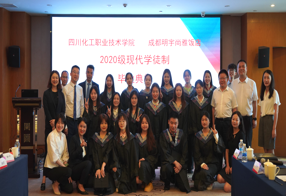 6月30日,成都正熙雅居酒店、成都明宇尚雅酒店和成都瑞城名人酒店分别举行了2020级酒店管理专业现代学徒制毕业典礼。学校党委副书记、院长文申柳,经济管理学院院长马小洪、酒店管理与数字化运营专业负责人宣雯娟、专业教师王雅琦、2020级酒店管理学徒班辅导员谢耀辉及三家酒店各级管理人员和全体师傅参加活动。