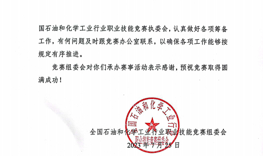 根据《人力资源社会保障部关于组织开展2023年全国行业职业技能竞赛的通知》(人社部函[2023]80号)文件精神,石化行业竞赛组委会正式启动第十四届全国石油和化工行业职业技能竞赛工作。第十四届全国石油和化工行业职业技能竞赛主办单位为中国石油和化学工业联合会、中国就业培训技术指导中心,竞赛办公室设在化学工业职业技能鉴定指导中心(简称鉴定指导中心)。竞赛设立化学检验员、化工总控工、机修钳工和涂装工4个职业。