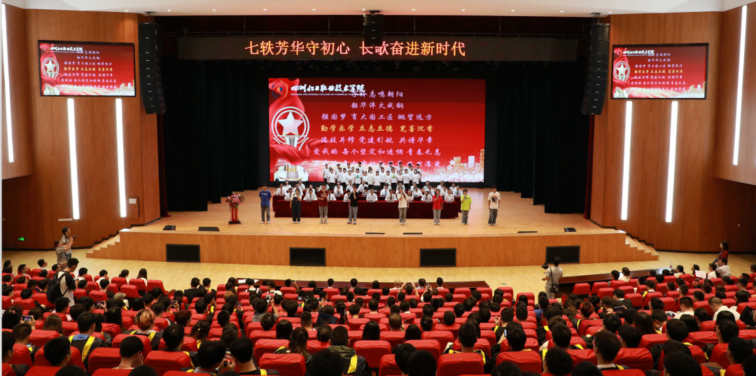 毕业典礼开始前,首先是10分钟的校歌快闪。同学们热情饱满地演唱校歌,献礼学校建校70周年。