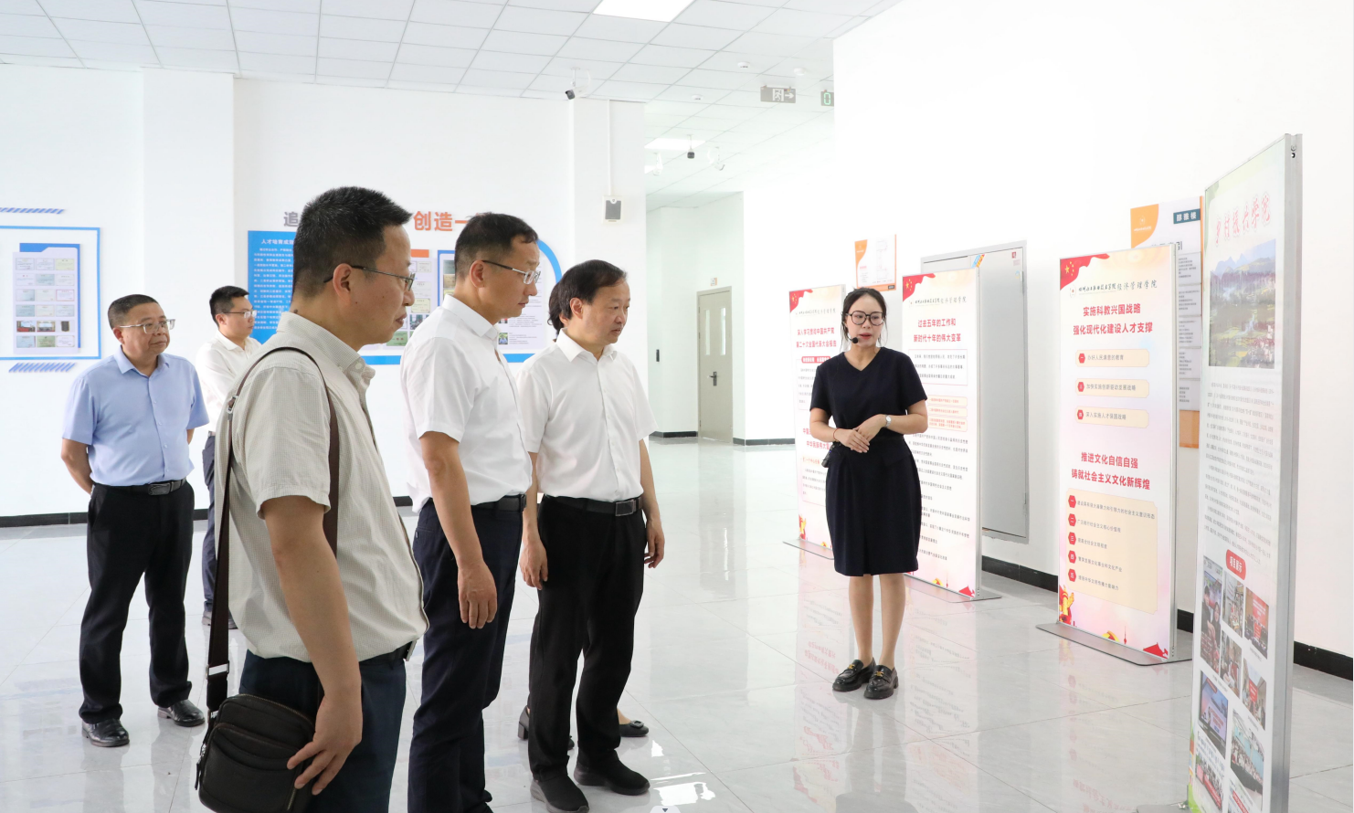 陈廷俊一行先后前往酒谷湖校区经济管理学院、川酒学院实训室参观调研,详细了解学校发展规划、教学实训设备建设、校园环境等情况。