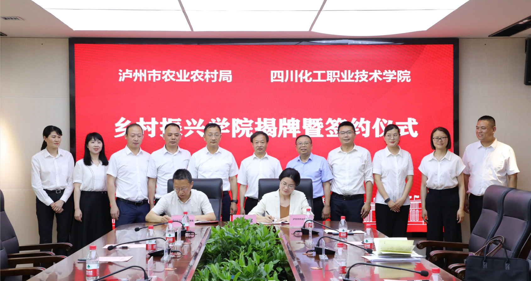 仪式上,刘志勇书记和陈廷俊局长共同为“乡村振兴学院”揭牌。常敏与蒲开伦代表双方签约。