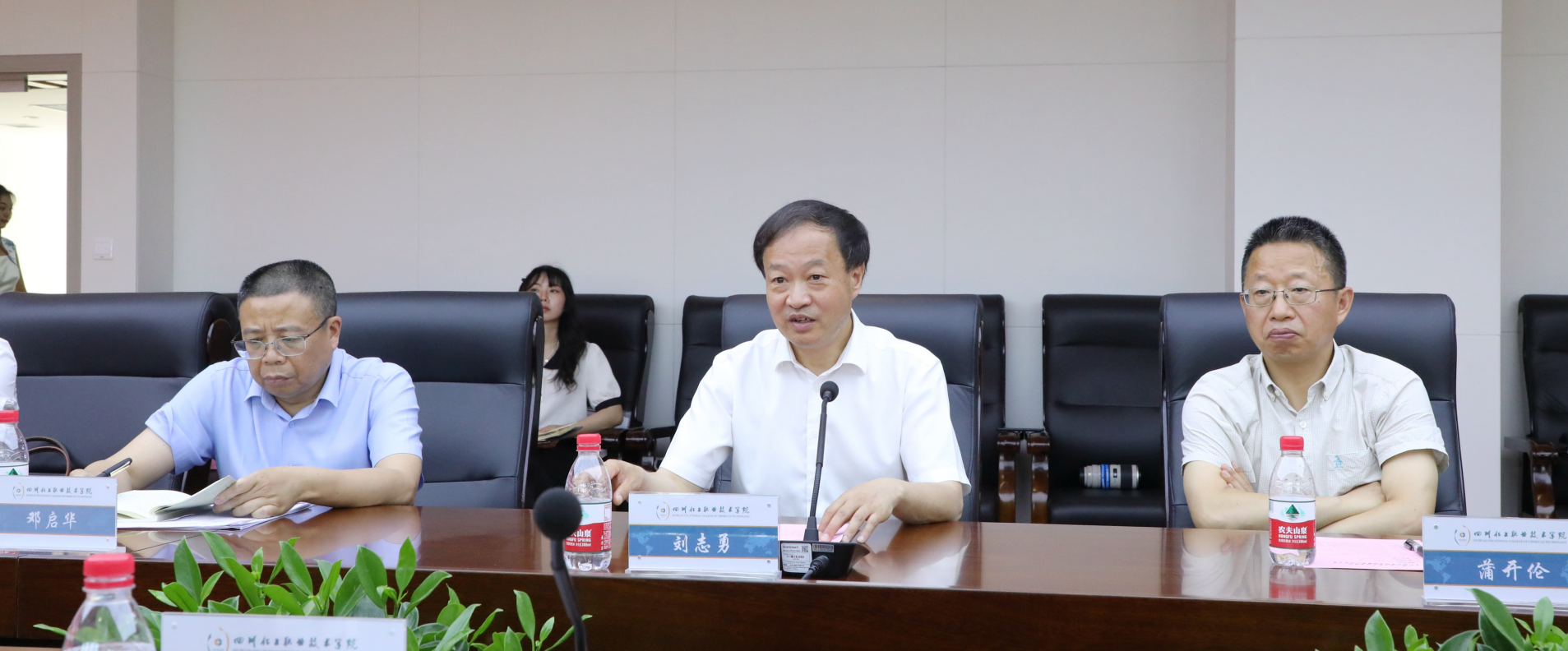 刘志勇在致辞中表示,学校与市农业农村局合作共建“乡村振兴学院”,是贯彻落实市委、市政府工作部署和要求,大力实施乡村振兴战略的一项创新性举措。学院将充分发挥自身优势,围绕“产业振兴、人才振兴、文化振兴、生态振兴、组织振兴”五大核心内容,在农特产品升级、农创平台推广、乡村人才培养及科研成果转化、非遗文化传承等方面开展务实合作,在全面推进乡村振兴发展战略中取得更大成效,为全市奋力打造新时代乡村振兴样板之地作出川化职院应有贡献。