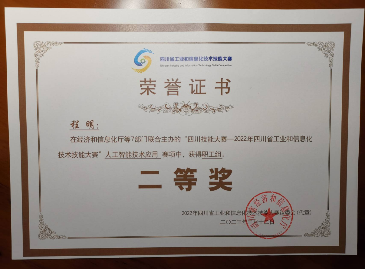 5月5日,四川省经济和信息化厅、四川省人力资源和社会保障厅等7部门联合发布了《关于“四川技能大赛—2022年四川省工业和信息化技术技能大赛”获奖选手和单位的通报》。学校荣获“优秀组织单位”奖;机械工程学院新能源汽车2032班梁金平、汽车维修2121班刘泳宏荣获新能源汽车智能化赛项(学生组)“二等奖”,付龙虎老师荣获“优秀裁判员”称号;机械工程学院王晓禹老师荣获焊接设备操作工赛项(职工组)“三等奖”;数字经济学院大数据技术2132班罗文武荣获人工智能技术应用赛项(学生组)“三等奖”,数字经济学院程明老师荣获职工组“二等奖”;药品与环境工程学院张华芳老师荣获化学检验员赛项“二等奖”、刘强老师荣获“三等奖”;川酒学院黄海老师荣获白酒酒体设计赛项“优秀裁判员”。
