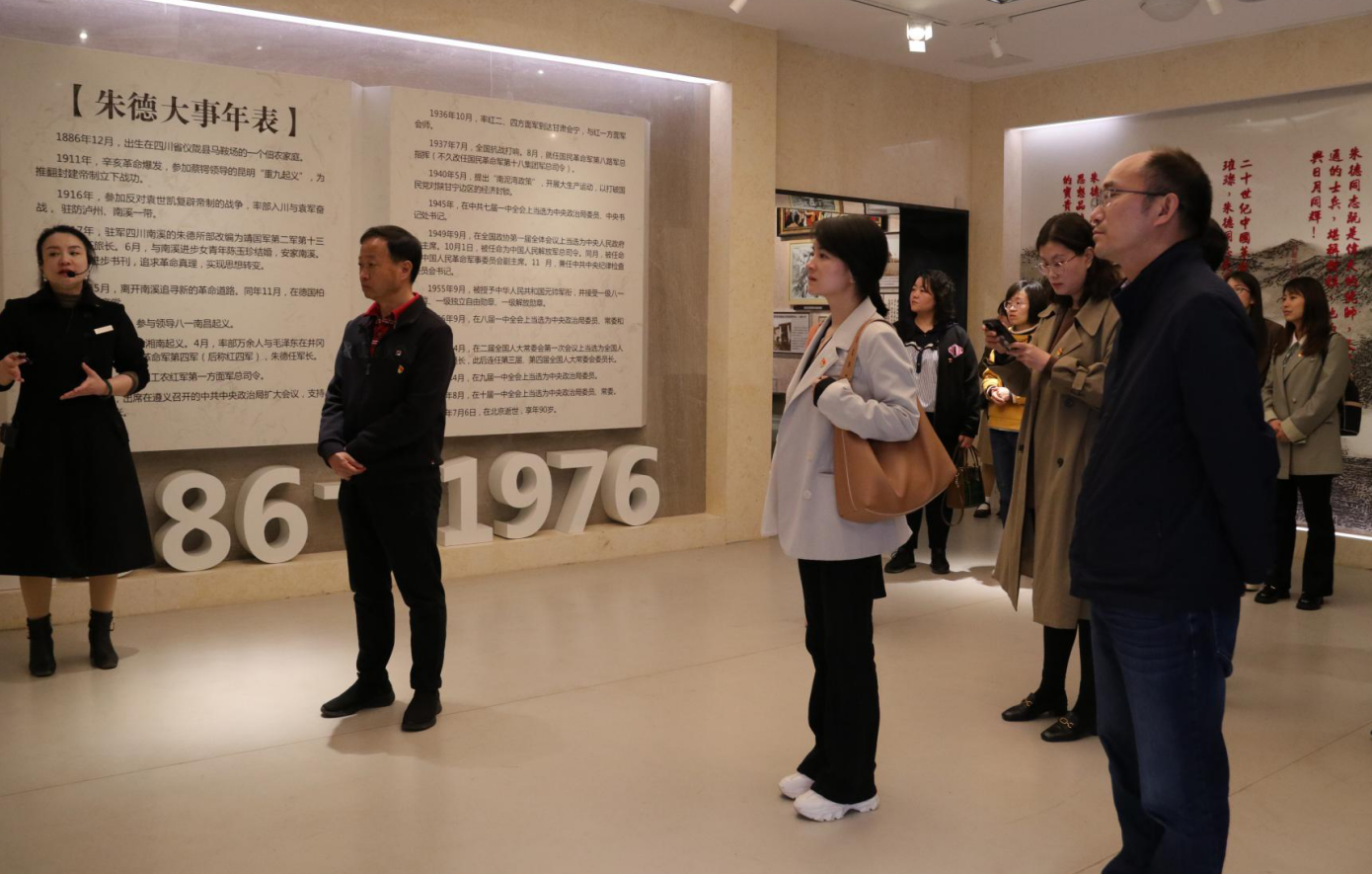 在讲解员的带领下,大家认真参观了朱德旧居纪念馆和陈列展览馆。从一件件展品、一幅幅老照片中,重温了朱德同志的一生是光辉的一生,波澜壮阔的一生。 朱德同志参加革命70年,经历了旧民主主义革命、新民主主义革命、社会主义革命、社会主义建设几个历史时期,经历过许多磨难和险境,为中国人民解放事业和社会主义建设事业建立了不朽功勋,深受全党全军全国各族人民爱戴和崇敬。