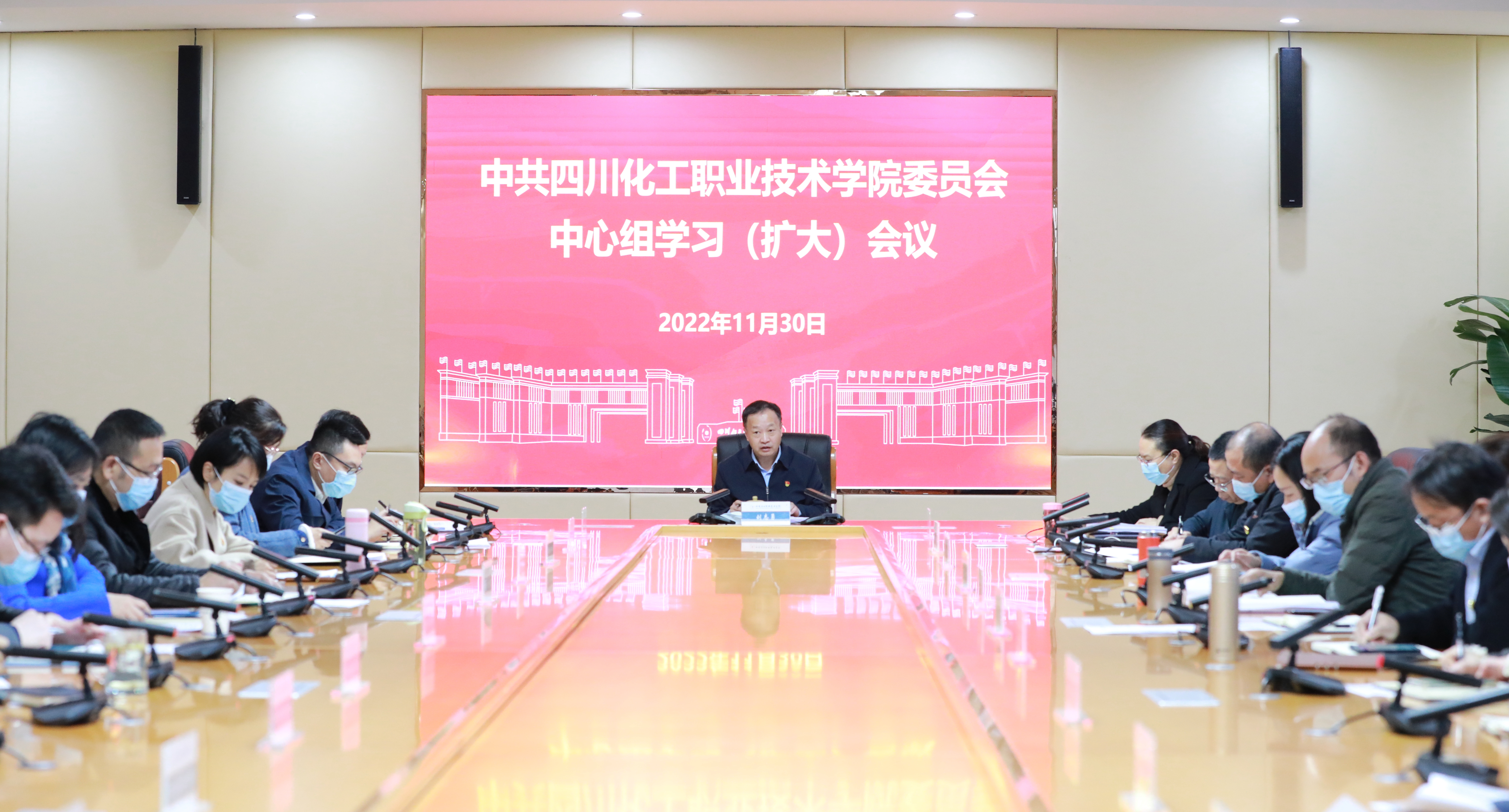 11月30日,学校在综合办公楼第一会议室召开了党委中心组学习(扩大)会议。学校党委书记刘志勇主持会议并讲话。学校中层及以上领导干部参加会议。