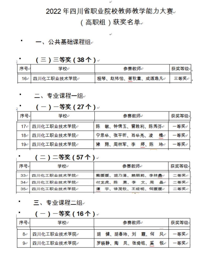 7月5日至6日,由四川省教育厅主办的2022年四川省职业院校技能大赛教学能力比赛现场决赛在德阳四川建筑职业技术学院举行。7月8日,四川省教育厅公示了2022年四川省职业院校教师教学能力大赛拟获奖名单。学校选送的参赛团队(9件作品)全部获奖,其中8件晋级四川省现场决赛。最终,学校喜获“一等奖”5个;“二等奖”3个;“三等奖”1个;学校获“最佳组织奖”,“一等奖”获奖数全省排名前三,创历史新高。