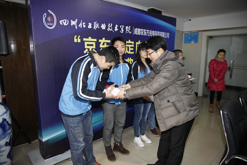 成都京东方技术部部长王永茂先生代表集团向“京东方定向班”学员代表发放纪念品