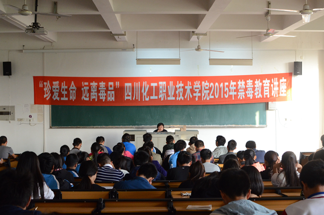 为筑牢在校学生拒毒防毒的防线,提高我院学生识毒、拒毒、防毒的意识和能力,自觉抵御毒品侵害,健康成长, 28日下午,学院保卫处举办了“珍爱生命,远离毒品”禁毒教育专题讲座,江阳区公安分局龙透关派出所伍娟所长应邀主讲,全院各系部学生代表近150名同学参加讲座。