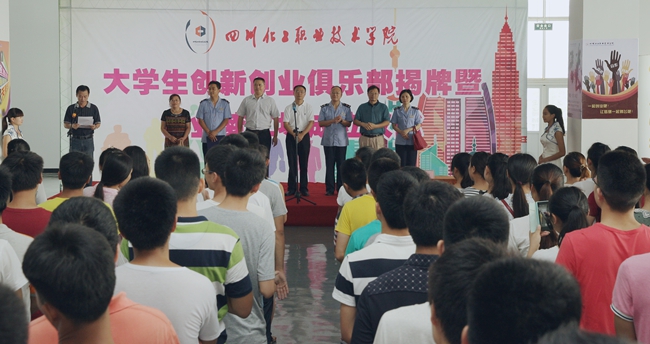 6月19日上午,学院大学生创新创业俱乐部成立大会在学院生活中心四楼隆重举行。泸州市工商局徐俭副局长、泸州市就业局创业指导中心周卫主任、学院杨宗伟院长、王志斌副院长、相关部门负责人、大学生创新创业俱乐部学生成员,以及泸州市的各路主流媒体记者们出席了此次会议。会议由招生就业处罗伦忠处长主持。