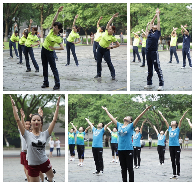 本次比赛得到了学院领导和学院教职员工们的积极支持和响应,大家抽出难得的工作间隙和业余休息时间,积极准备,认真排练,在全院掀起了一股运动健身的热潮。