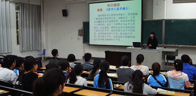 下午,学院图书馆邀请人文教研室程琴副教授在实A108做了题为《快乐阅读——成长成才的阶梯》的讲座,学院读书协会、普通话协会、周末大讲堂会员和其它各班同学共200余人参加,程琴老师介绍了怎样利用图书馆资源,如何查阅图书馆的资源,分享了快乐阅读是学生们成长成才的阶梯,倡导大家养成阅读习惯。
