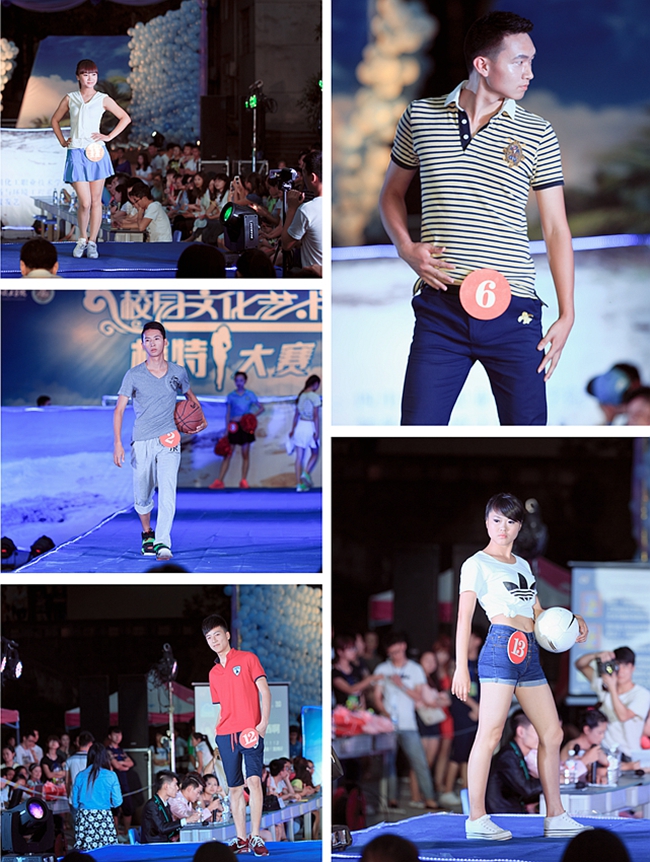 大赛分为活力青春、夏日风情和晚装三个环节。活力青春以运动装为主,带来的是个人魅力与青春活力;夏日风情环节中,独特的蓝色调为背景的海滩风情舞台设计,巧妙的服装搭配,二者完美的结合了在一起,让整个秀场的观众都沉浸在夏日海滩的美景与激情之中;晚装展示环节,柔美的音乐,优美的T台步伐,将模特们独特的魅力与风采展现的淋漓尽致。经过激烈角逐,最终19号选手李静秋和14号选手刘吉鑫分获男女组冠军。