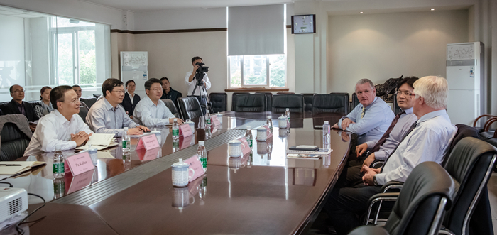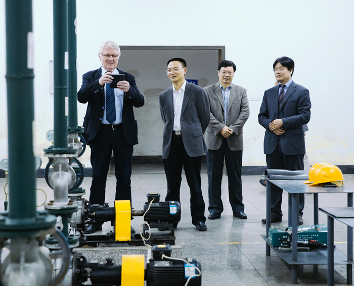 座谈会结束后,杨宗伟院长陪同Juergen Ebkemeier一行,参观了学院实训中心。客人对我院实训中心的建设理念和水平表示了高度赞赏。