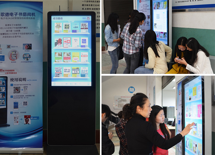 歌德电子书借阅系统,读者只要用手指轻轻地碰显示屏上的图片就能实现对主机操作,拿出手机一扫,即可借阅书籍,从而使人机交互更为直截了当,这种技术更是大大方便了那些不懂电脑操作的用户。