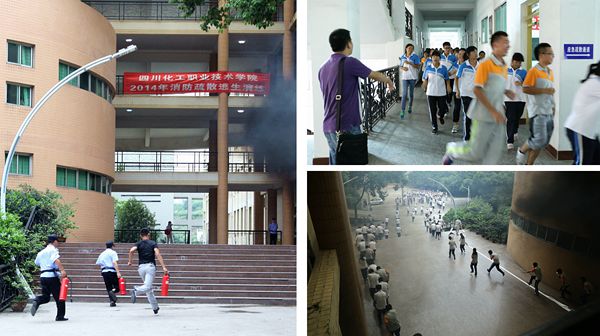 为进一步提高师生应急反应能力,增强安全防范意识,提高自防自救技能,同时检验我院在发生火灾时的灭火处突、疏散逃生应急处置能力,经报学院同意,9月13日下午,学院保卫处协同党委办公室、学院办公室、学生处、后勤服务处、各系部及军训教官组织2014级新生开展了一次消防疏散逃生演练,2000余名新生参加了疏散逃生和灭火实操两项演练内容。学院院长杨宗伟、副院长苏建智、党委副书记陈淑娟、院长助理文申柳等到场观摩了演练全过程。