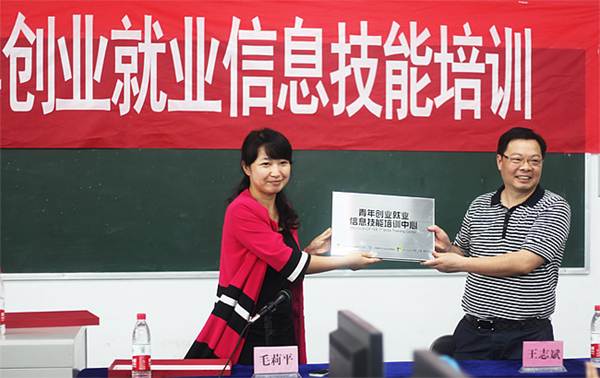 6月29日,泸州市“青年创业就业信息技能培训中心”授牌仪式在我院举行。中共泸州市团委副书记毛莉平,我院副院长王志斌、信息工程系主任李宏、副主任罗在文、部分老师以及参加微软项目培训的学员参加了此次活动。